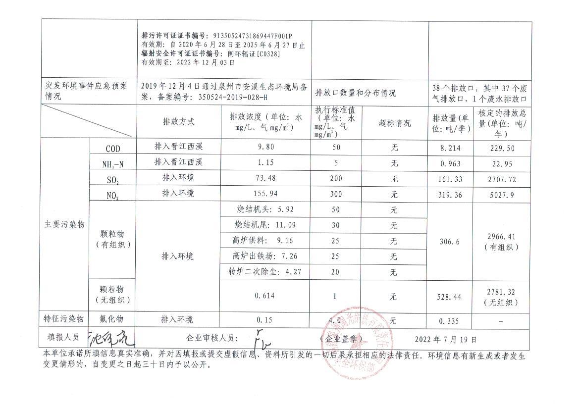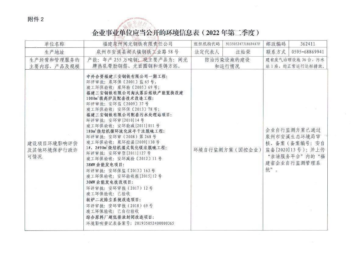 企業(yè)事業(yè)單位應(yīng)當(dāng)公開的環(huán)境信息表(2022年度第二季度)