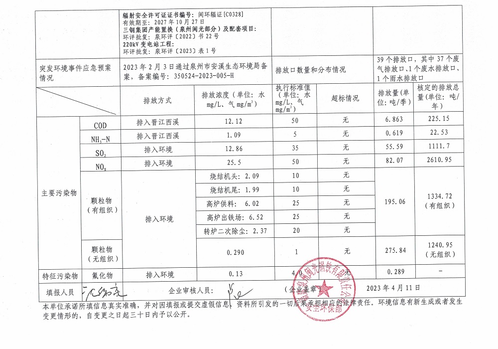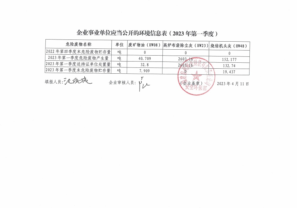 企業(yè)事業(yè)單位應(yīng)當(dāng)公開的環(huán)境信息表(2023年度第一季度)