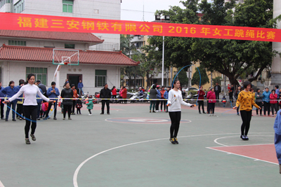為讓廣大女員工度過一個充實、愉快、富有意義的節(jié)日,公司工會于3月15日舉行女工跳繩比賽,比賽分為單人跳繩和團(tuán)體跳繩。經(jīng)過激烈角逐,曹麗艷、謝慶紅、趙琴慧分獲單人跳繩前三名,直屬二支部、綜合廠支部、供銷支部分獲團(tuán)體跳繩前三名。