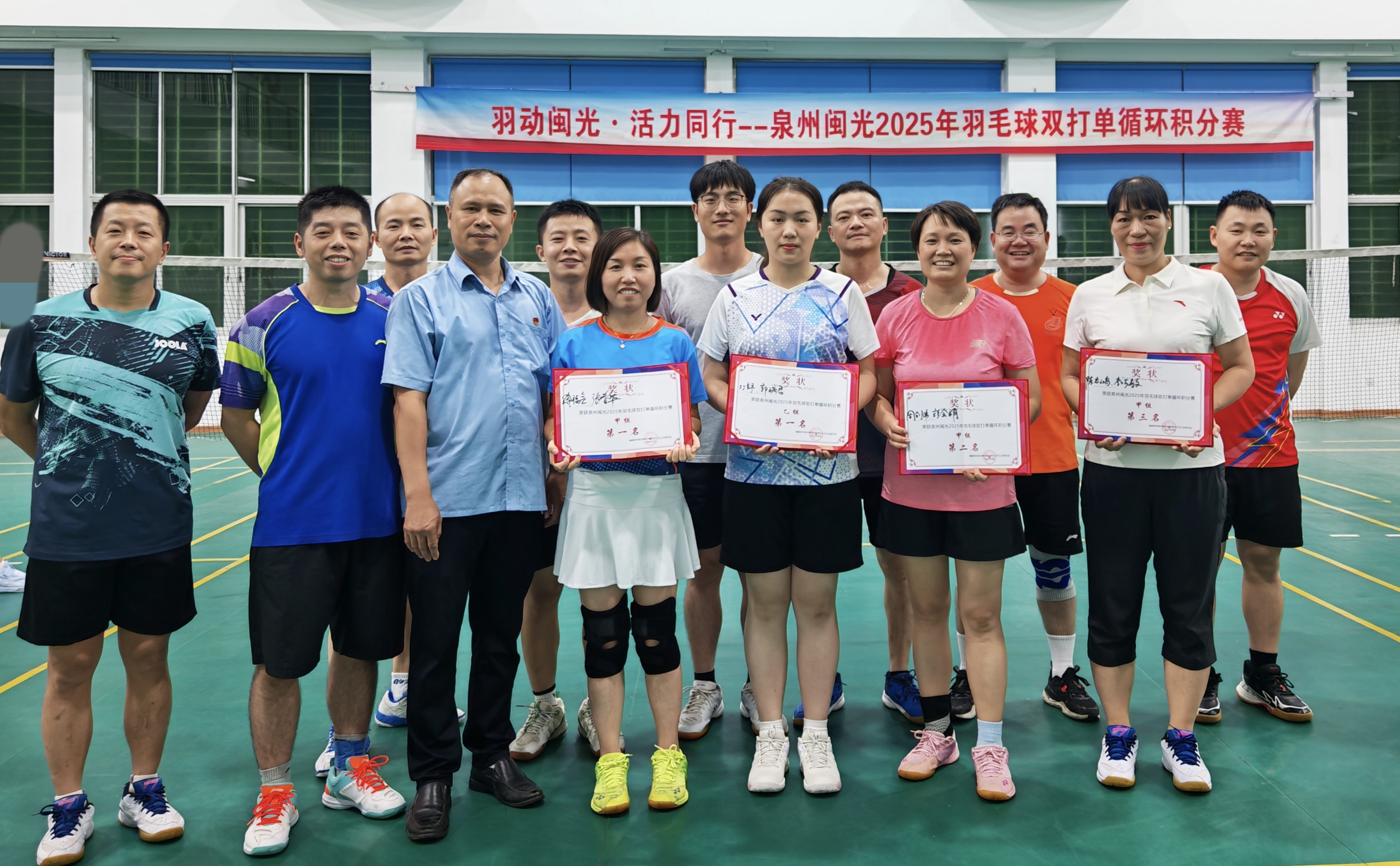 8月21日晚,隨著最后一場(chǎng)對(duì)決終場(chǎng)哨聲的響起,為期三天的泉州閩光羽毛球雙打單循環(huán)積分賽在公司黨群服務(wù)活動(dòng)中心羽毛球館圓滿落幕。本次比賽以“羽動(dòng)閩光,活力同行”為主題,為全體職工呈現(xiàn)了一場(chǎng)精彩紛呈的運(yùn)動(dòng)盛宴。