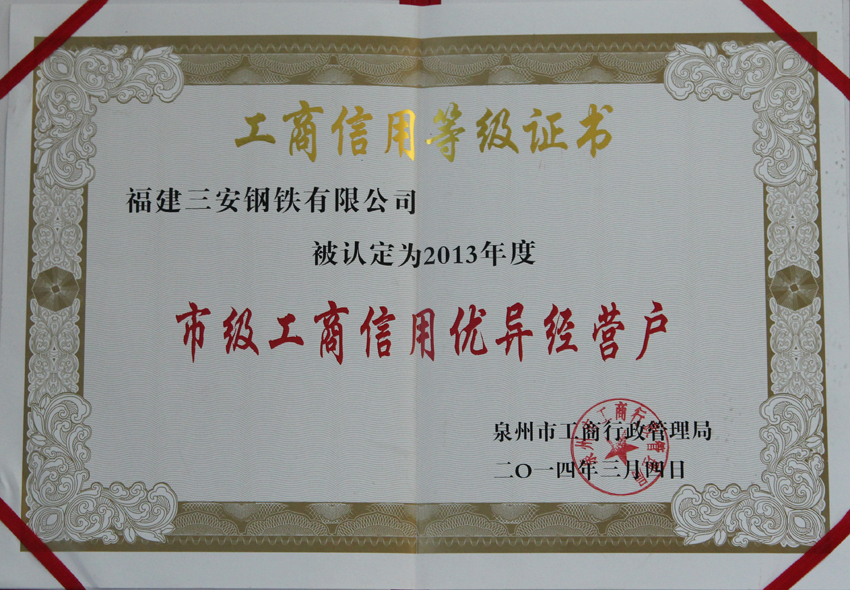 2013年度市級工商信用優(yōu)異經(jīng)營戶