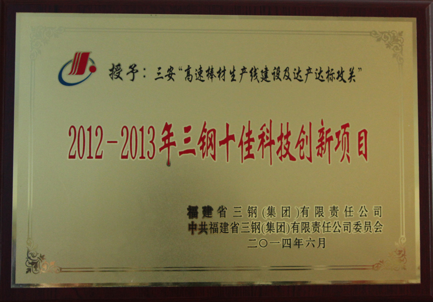 2012-2013年三鋼十佳科技創(chuàng)新項(xiàng)目